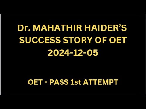Dr. MAHATHIR HAIDER’S SUCCESS STORY OF OET